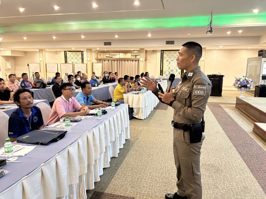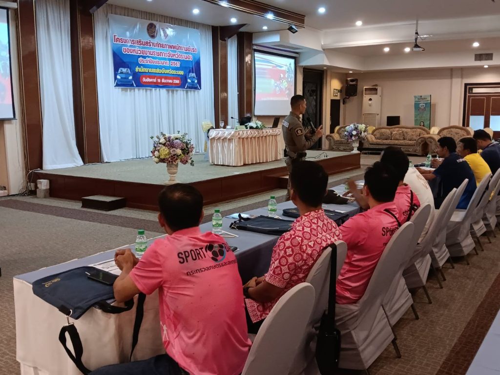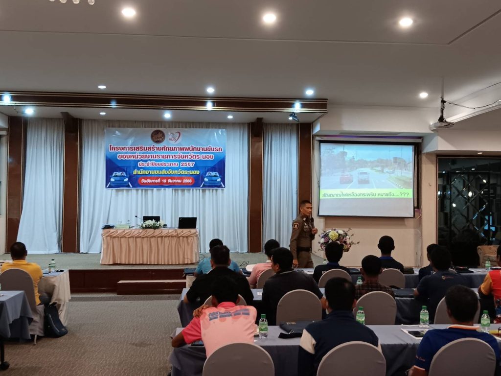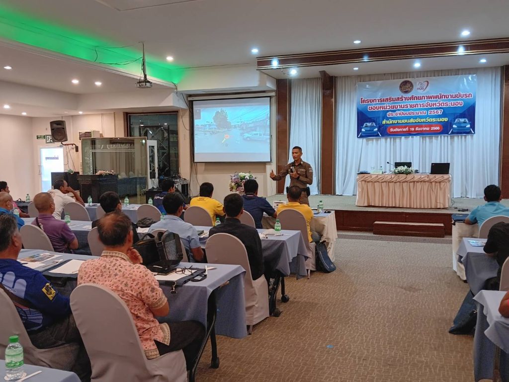 การอบรมโครงการเสริมสร้างศักยภาพพนักงานขับรถของหน่วยงานราชการจังหวัดระนอง 20 ธันวาคม 2023 โดย Admin Preecha / ข่าวประชาสัมพันธ์,ข่าวกิจกรรม จำนวนผู้อ่าน: 106 วันที่ 19 ธันวาคม 2566 เวลา 10.00-11.20 น. ภายใต้การอำนวยการของ พ.ต.อ.ธวัชชัย ซุ้นเจริญ ผกก.สภ.เมืองระนอง พ.ต.ท.ชาตรี ปานดำ รอง ผกก.ป.สภ.เมืองระนอง พ.ต.ต.ธันยวิชญ์ แทนมาก สว.จร.สภ.เมืองระนอง ได้มอบหมายให้ ด.ต.ปรีชา อำพันกาญจน์ ผบ.หมู่ (จร) สภ.เมืองระนอง บรรยายให้ความรู้ในหัวข้อ “กฎหมายว่าด้วยทางหลวง และกฎหมายว่าด้วยการจราจรทางบก” แก่พนักงานขับรถของหน่วยงานราชการ ตามโครงการเสริมสร้างศักยภาพพนักงานขับรถของหน่วยงานราชการจังหวัดระนอง ของสำนักงานขนส่งจังหวัดระนอง ณ ห้องประชุม เฮอริเทจ แกรนด์ คอนเวนชั่น