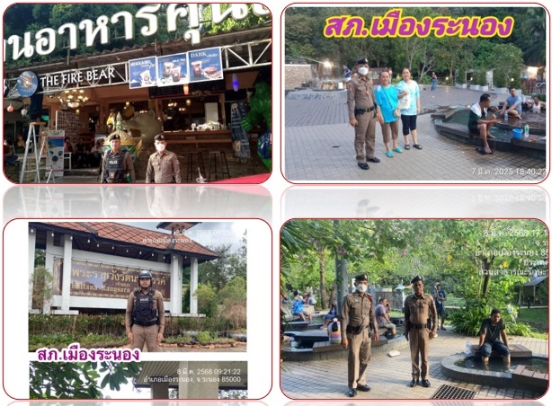 วันที่ 12 มีนาคม 2568 สายตรวจรถยนต์, สายตรวจรถจักรยานยนต์, สาตรวจตำบลบางริ้น, สายตรวจบ่อน้ำร้อนรักษะวาริน ว.4 ว.10 แหล่งท่องเที่ยวสำคัญ, สถานที่พัก, สถานีขนส่งผู้โดยสารจังหวัดระนอง และสถานที่จุดเสี่ยงจุดล่อแหลมในเขตพื้นที่รับผิดชอบ ได้ออกตรวจเพื่อป้องกันเหตุและดูแลความปลอดภัยในชีวิตร่างกาย ทรัพย์สินให้แก่นักท่องเที่ยว