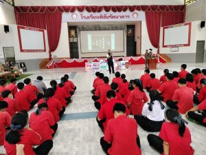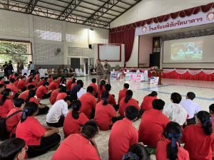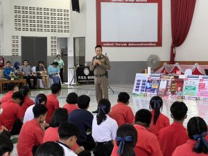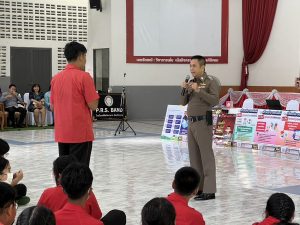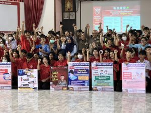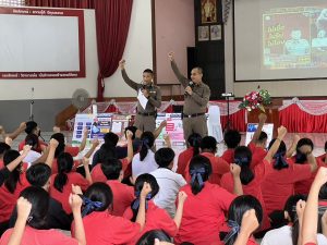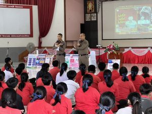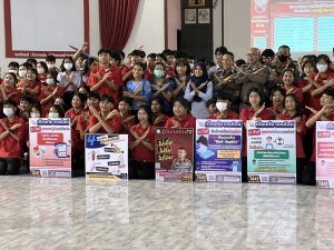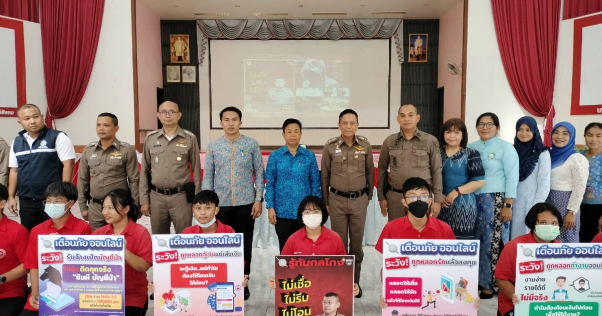 วันที่ 11 สิงหาคม 2566 เวลา 14.00-16.00 น. พ.ต.อ.ภคยศ ทนงศักดิ์ รอง ผบก.ภ.จว.ระนอง, พ.ต.อ.ศุภณัฐ รัตนภิรมย์ ผกก.สภ.เมืองระนอง, พ.ต.ท.ธีระพงศ์ กูลระวัง รอง ผกก.สส.สภ.ราชกรูด รรท.รอง ผกก.ป.สภ.เมืองระนอง, พ.ต.ต.สุรศักดิ์ บุญทองสังข์ สวป.สภ.เมืองระนอง, ว่าที่ พ.ต.ต.ธันยวิชญ์ แทนมาก สว.จร.สภ.เมืองระนอง พร้อมข้าราชการตำรวจ สภ.เมืองระนอง ทุกแผนกงาน ประกอบด้วย งานป้องกันปราบปรามฯ, งานสอบสวนฯ, งานสืบสวน, งานจราจรฯ และงานอำนวยการ ร่วมประชาสัมพันธ์และบรรยายให้ความรู้ ในเรื่อง รูปแบบ 18 กลโกงของมิจฉาชีพ สร้างภูมิคุ้มกันวัคซีนไซเบอร์ รู้ทันกลโกง “ไม่เชื่อ ไม่รีบ ไม่โอน” แก่นักเรียนโรงเรียนพิชัยรัตนาคาร ณ ห้องประชุมโรงเรียนพิชัยรัตนาคาร พร้อมทั้งเชิญชวนให้คณะ ครู นักเรียน ร่วมสมัครทำแบบทดสอบวัคซีนไซเบอร์ 40 ข้อ สร้างเครือข่ายป้องกันกลโกงทางไซเบอร์ เพื่อป้องกันการถูกหลอกลวงออนไลน์ ไม่ให้ตกเป็นเหยื่อของอาชญากร ต่อไป