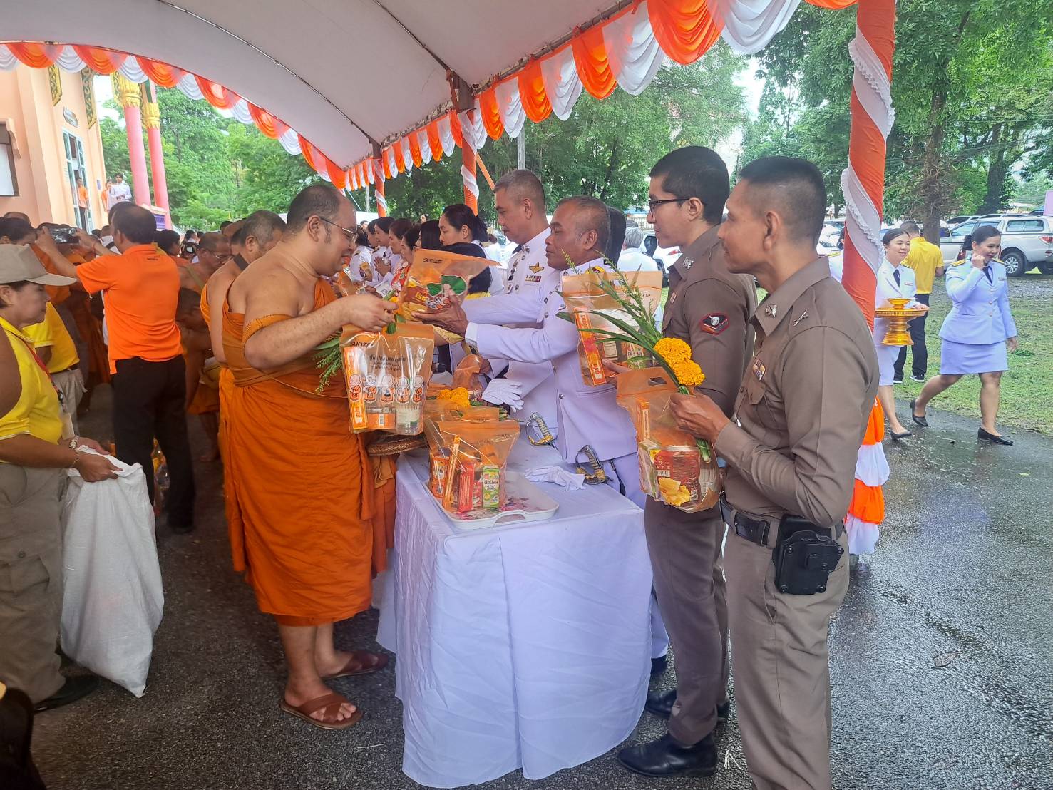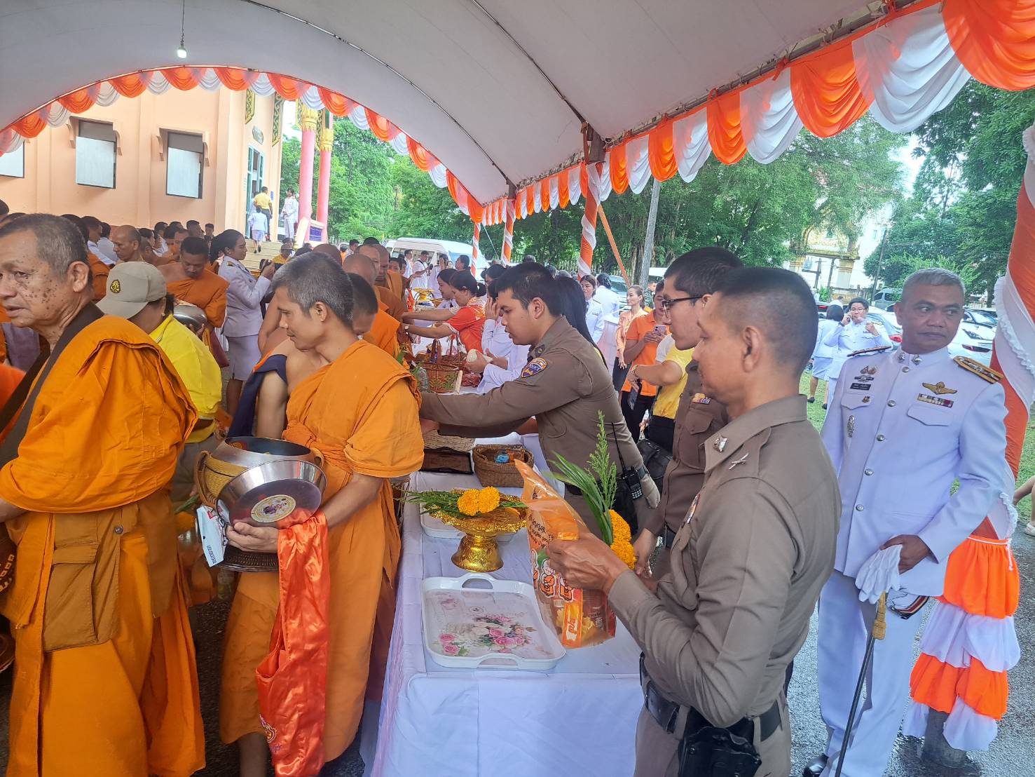 พร้อมข้าราชการตำรวจในสังกัด ร่วมพิธีเจริญพระพุทธมนต์และทำบุญตักบาตรข้าวสารอาหารแห้งเนื่องในโอกาสวันคล้ายวันประสูติสมเด็จพระนางเจ้าน้องนางเธอ เจ้าฟ้าจุฬาภรณ์วลัยลักษณ์อัครราชชกุมารี กรมพระศรีสวางควัฒน วรขัตติยราชนารี ณ วัดสุวรรณคีรีวิหารพระอารามหลวง