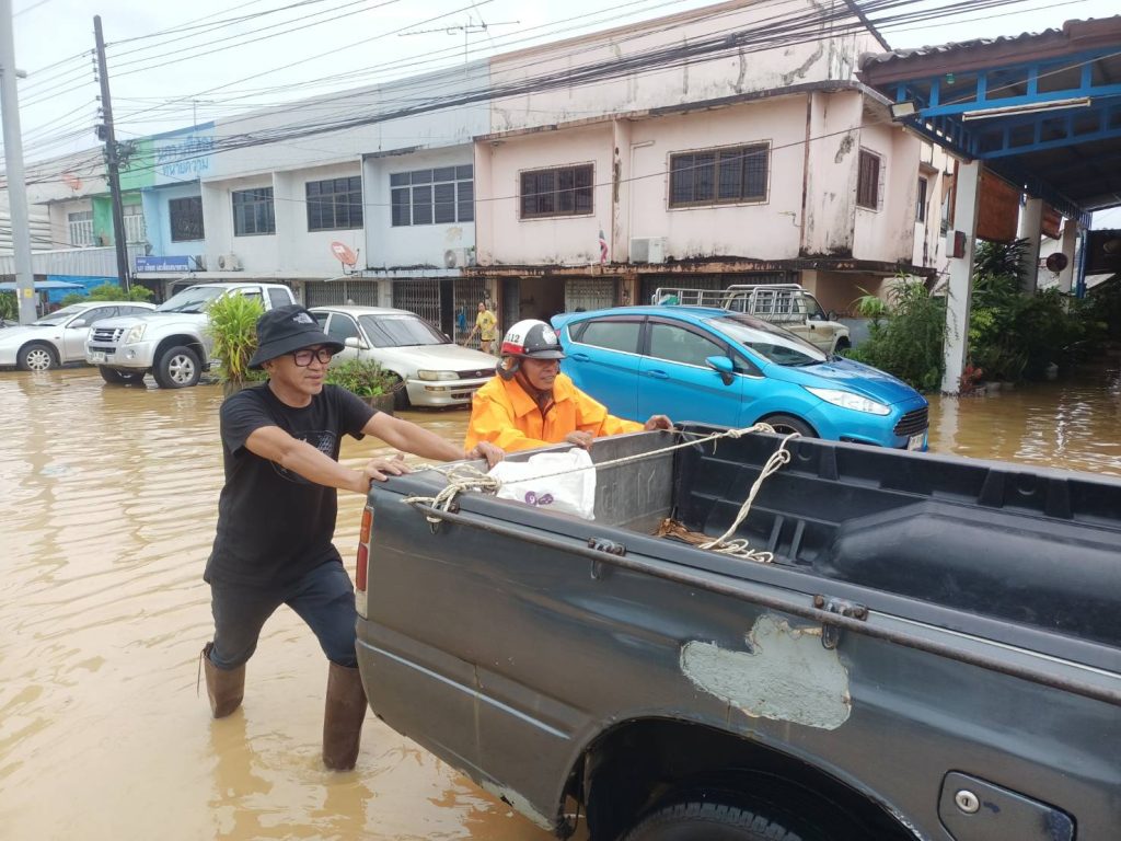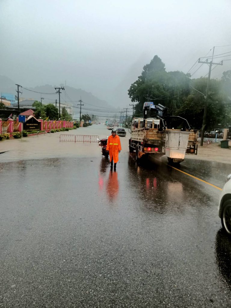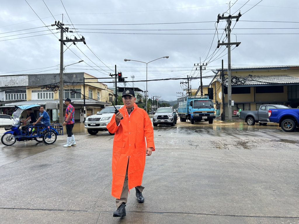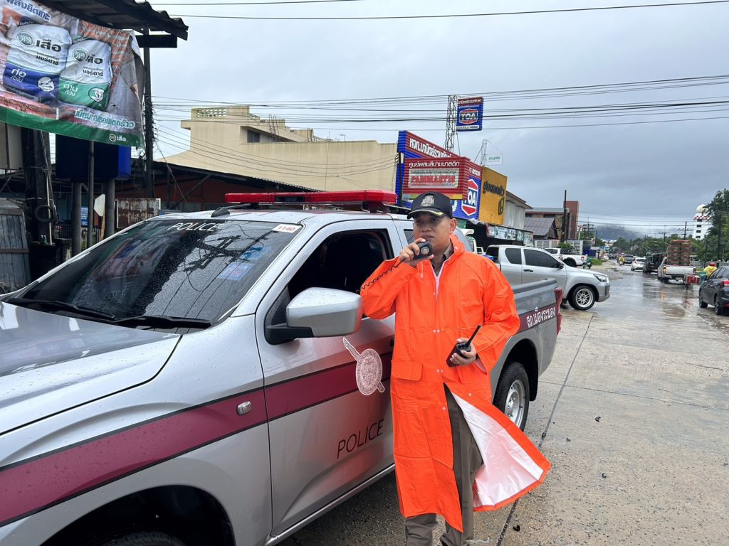 วันที่ 18 กรกฎาคม 2566 เวลา 09.30-11.00 น. พ.ต.อ.ศุภณัฐ รัตนภิรมย์ ผกก.สภ.เมืองระนอง พร้อมเจ้าหน้าที่ตำรวจจราจร สภ.เมืองระนอง ออกช่วยเหลือประชาชนที่ประสบเหตุน้ำท่วมขัง ในพื้นที่รับผิดชอบ เนื่องจากฝนตกติดต่อเป็นเวลานาน ทำให้น้ำไหลลงคลองระบายน้ำไม่ทัน ทั้งนี้ได้จัดการจราจรบนถนนที่น้ำท่วมขัง ห้ามไม่ให้รถขนาดเล็กผ่าน (รถยนต์ขนาดเล็ก รถจักรยานยนต์) พร้อมทั้งประชาสัมพันธ์ให้รถขนาดใหญ่ และรถยกสูงที่สามารถผ่านได้ ขับช้าๆ เพื่อป้องกันมิให้เกิดความเสียหายแก่บ้านเรือนและทรัพย์ของประชาชนบริเวณข้างทาง โดย พ.ต.อ.ศุภณัฐ รัตนภิรมย์ ผกก.สภ.เมืองระนอง เป็นควบคุมและสั่งการด้วยตนเอง จนสามารถเปิดการจราจรได้ตามปกติ ในเวลา 11.00 น.
