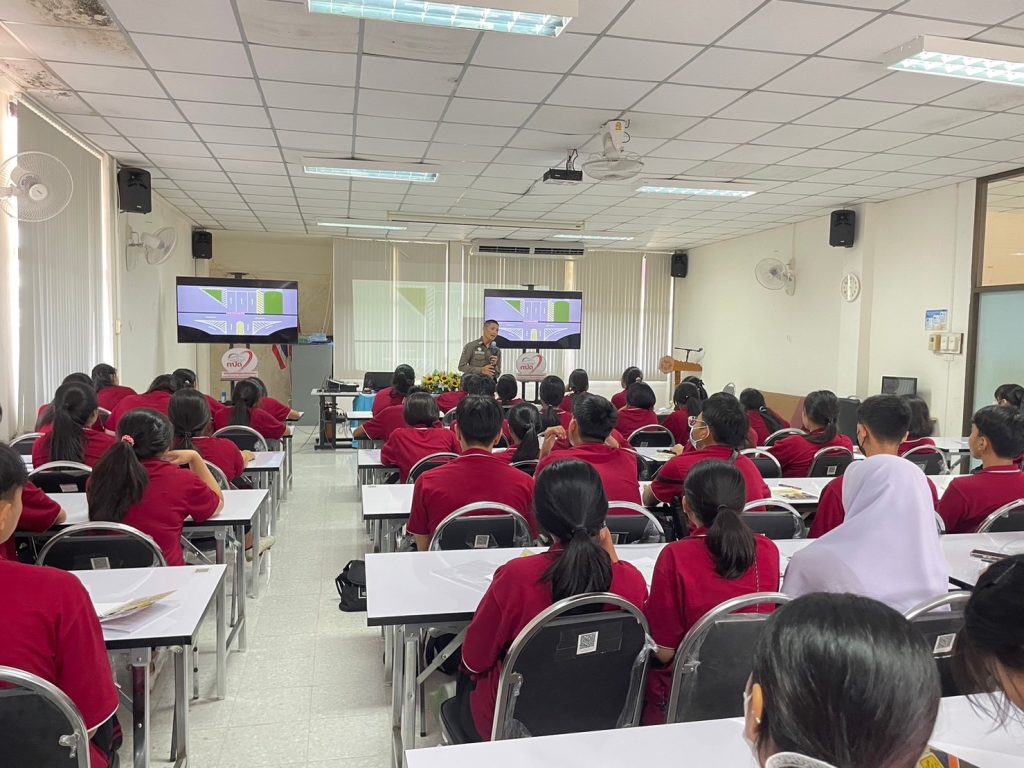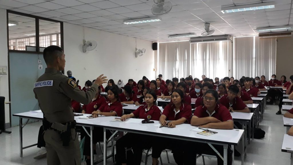 โครงการนักเรียนรุ่นใหม่มีใบขับขี่ ประจำปีงบประมาณ พ.ศ. 2567 (รุ่นที่ 1) 18 มกราคม 2024 โดย Admin Preecha / ข่าวประชาสัมพันธ์,ข่าวกิจกรรม จำนวนผู้อ่าน: 55 วันที่ 18 มกราคม 2567 เวลา 09.00-11.00 น. ภายใต้การอำนวยการของ พ.ต.อ.ธวัชชัย ซุ้นเจริญ ผกก.สภ.เมืองระนอง พ.ต.ท.ชาตรื ปานดำ รอง ผกก.ป.สภ.เมืองระนอง พ.ต.ต.ธันยวิชญ์ แทนมาก สว.จร.สภ.เมืองระนอง ได้สั่งการให้ ด.ต.ปรีชา อำพันกาญจน์ ผบ.หมู่ (จร) สภ.เมืองระนอง บรรยายให้ความรู้ในหัวข้อ “กฎหมายว่าด้วยรถยนต์, กฎหมายว่าด้วยทางหลวง, และกฎหมายว่าด้วยการจราจรทางบก” แก่นักเรียนวิทยาลัยเทคนิคระนอง ที่เข้าร่วมโครงการนักเรียนรุ่นใหม่มีใบขับขี่ ประจำปีงบประมาณ พ.ศ. 2567 (รุ่นที่ 1) ณ ห้องอนรมสำนักงานขนส่งจังหวัดระนอง การบรรยายได้ประชาสัมพันธ์ตามมาตรการต่างๆที่เกี่ยวข้องควบคู่ไปด้วย