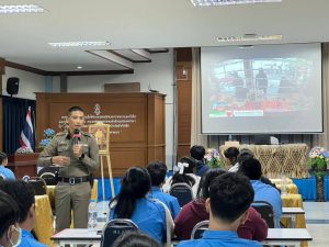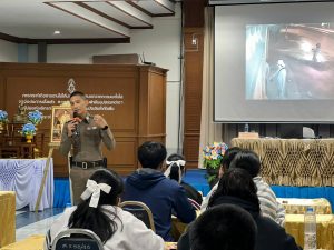 วันที่ 2 กันยายน 2566 เวลา 13.00-16.00 น. ภายใต้การอำนวยการของ พ.ต.อ.ศุภณัฐ รัตนภิรมย์ ผกก.สภ.เมือง ระนอง พ.ต.ท.ธีระพงค์ กูลระวัง รอง ผกก.สส.สภ.ราชกรูด รรท. รอง ผกก.ป.สภ.เมืองระนองและ ว่าที่ พ.ต.ต.ธันยวิชญ์ แทนมาก สว.จร.สภ.เมืองระนอง ได้สั่งการเจ้าหน้าที่ตำรวจชุดวิทยากร สภ.เมืองระนองเข้าบรรยายความรู้ในเรื่องกฎหมายจราจร และกฎหมายในชีวิตประจำวัน แก่นักเรียนโรงเรียนสตรีระนอง เพื่อให้นักเรียนตระหนักถึงบทบาท ความสำคัญของกระบวนการยุติธรรม ส่งผลต่อความผาสุกของประชาชน รวมทั้งนำความรู้ และประสบการณ์เป็นประโยชน์ต่อสังคมต่อไป