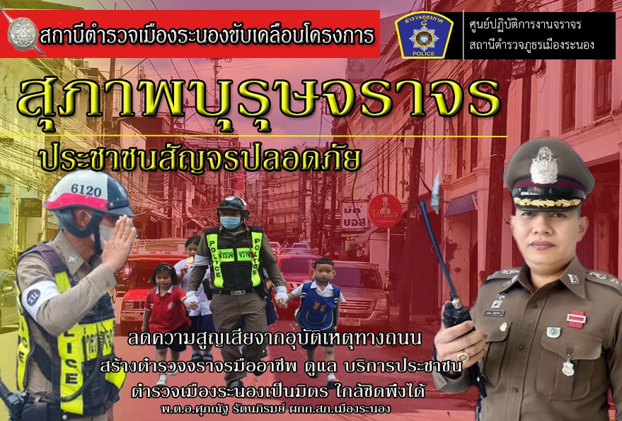 สถานีตำรวจภูธรเมืองระนอง ห่วงใยประชาชน ขับเคลื่อนโครงการ “สุภาพบุรุษจราจร ประชาชนสัญจรปลอดภัย” ลดอุบ