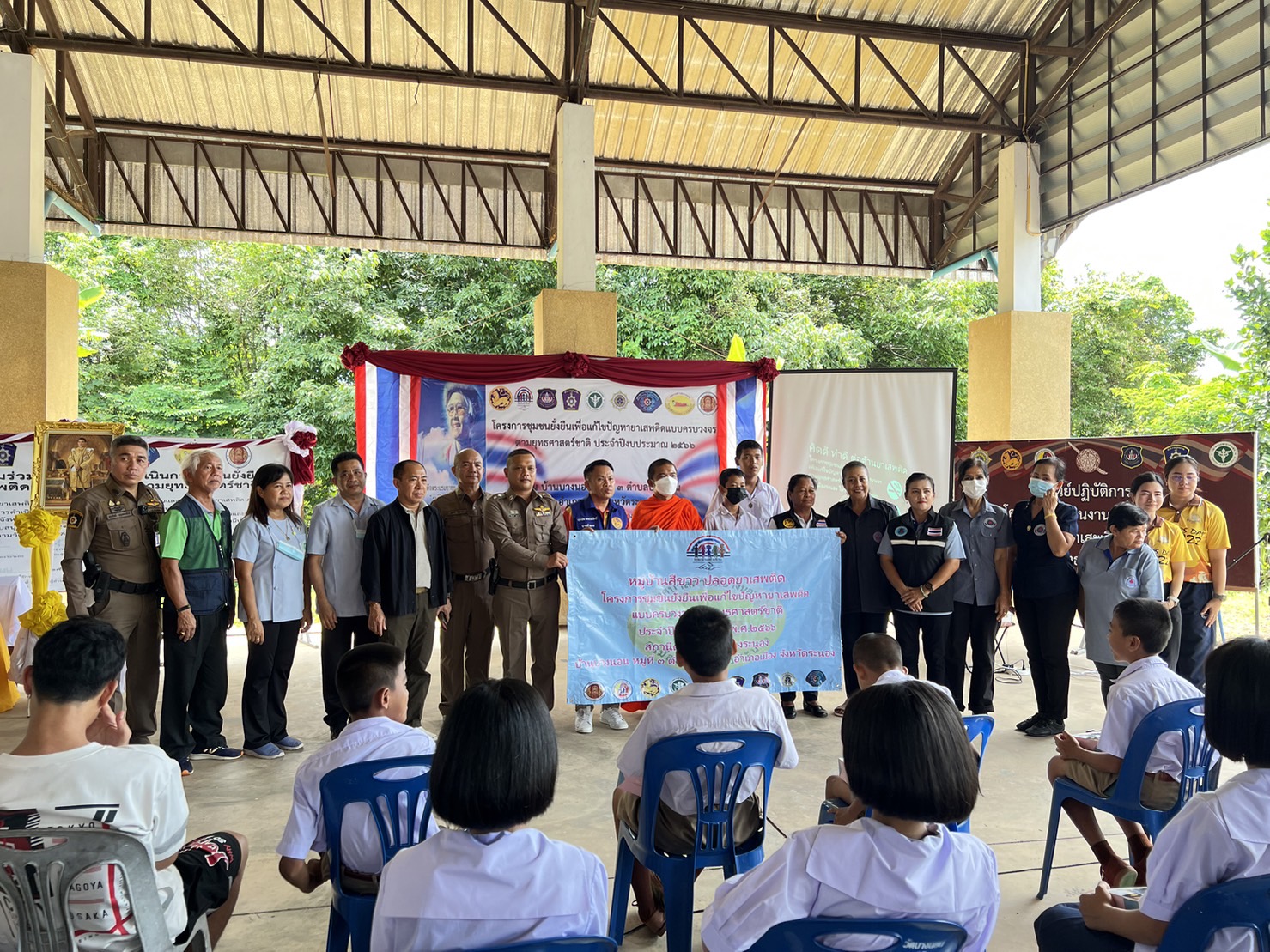 พิธีปิดโครงการชุมชนยั่งยืน เพื่อแก้ไขปัญหายาเสพติดแบบครบวงจรตามยุทธศาสตร์ สภ.เมืองระนอง ประจำปีงบประมาณ 2566