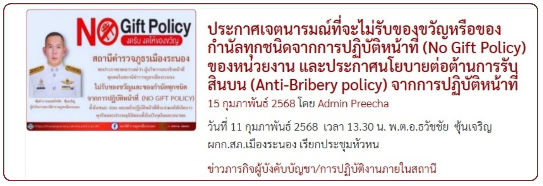 O18 ประกาศนโยบายต่อต้านการรับสินบน (Anti-Bribery Policy)