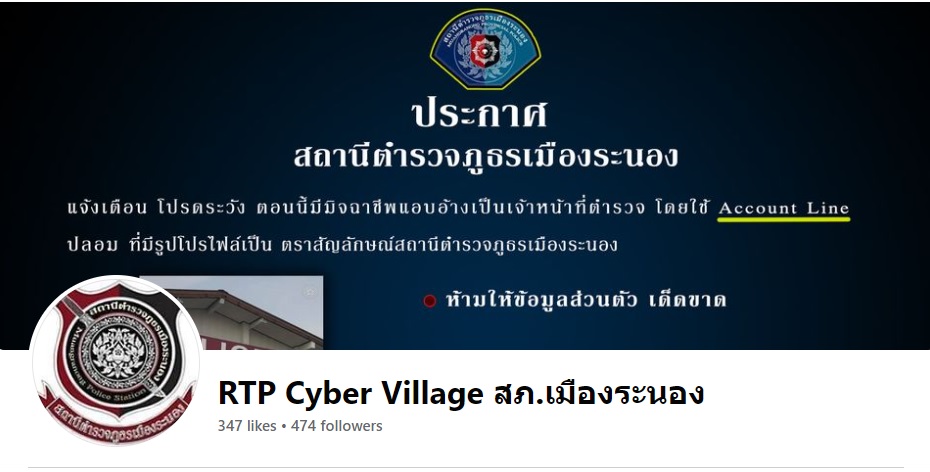ช่องทางประชาสัมพันธ์เผยแพร่ผ่าน Facebook RTP Cyber Village