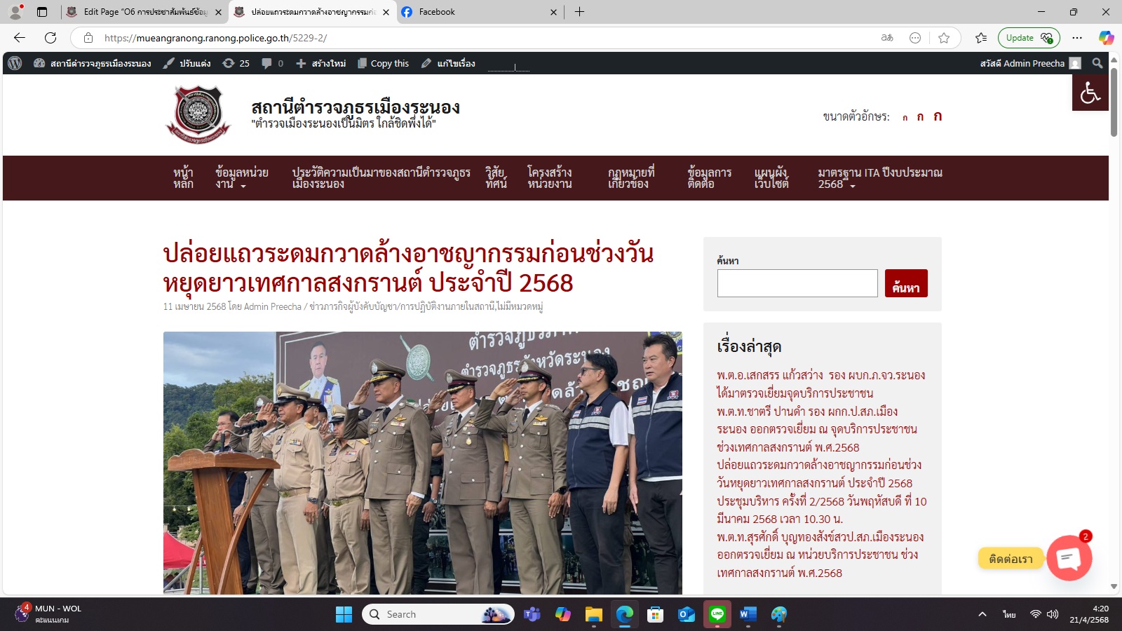 การประชาสัมพันธ์ข้อมูลการประเมินคุณธรรมและความโปร่งใสในการดำเนินงานของหน่วยงานภาครัฐ (Integrity and Transparency Assessment: ITA) ของสถานีตำรวจภูธรเมืองระนอง ประจำปีงบประมาณ พ.ศ. 2568
