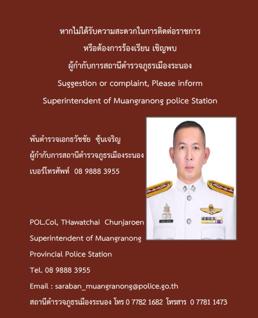 ช่องทางแจ้งเรื่องร้องเรียนทุจริตสถานีตำรวจภูธรเมืองระนอง